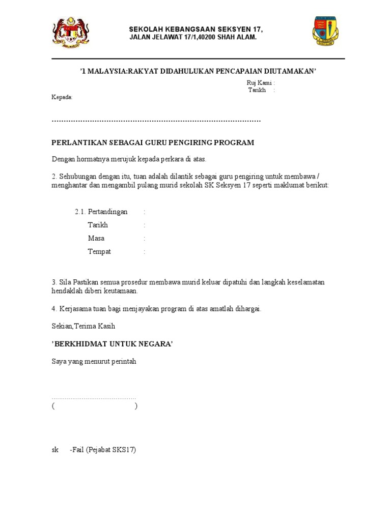 Contoh Surat Lantikan Guru Pengiring Pdf