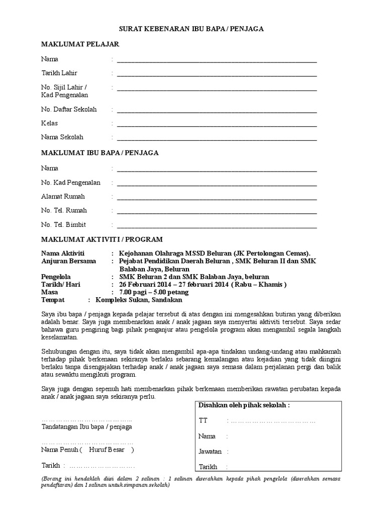 Borang Kebenaran Ibu Bapa Dan Surat Akuan Guru Pengiring Pdf